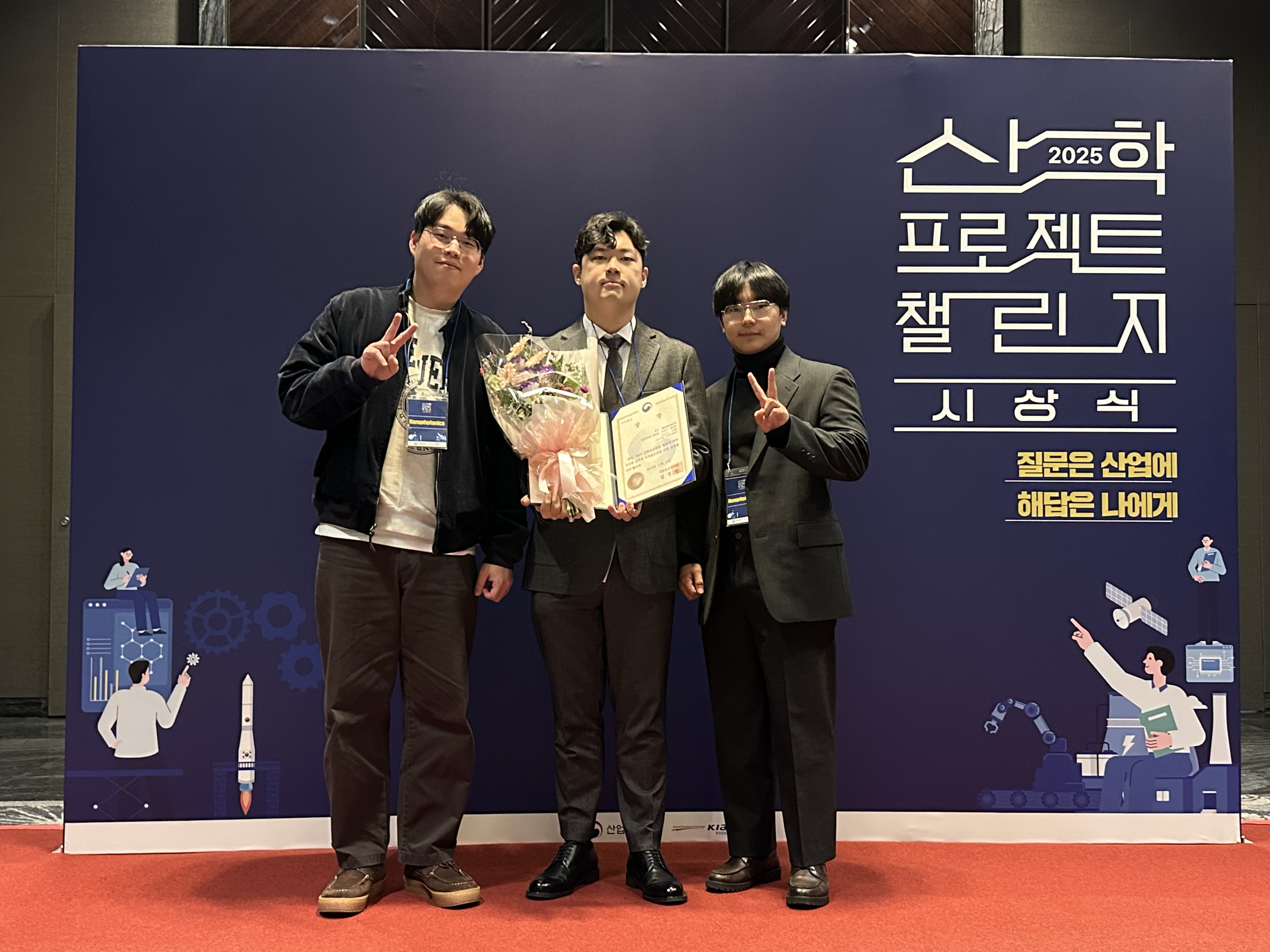 Master's students Bang Jong-Hyun, Park Jin-young and Chu Min-seok won the Minister of Trade, Industry, and Energy Award for the 2025 Industry-Academia Project. The competition, organized by the Ministry of Trade, Industry and Energy and the Korea Institute for Advancement of Technology (KIAT), saw the participation of 1,282 graduate students and a total of 530 teams from across the country. The competition included preliminary rounds in September and October, followed by the first and second rounds of the finals, culminating in 24 final award-winning teams (12 teams for the Minister of Trade, Industry and Energy Award and 12 teams for the KIAT Award). The award ceremony took place on the JW Marriott Dongdaemun Square Seoul . Bang Jong-Hyun, Park Jin-young and Chu Min-seok, under the team name "Nanophotonics," collaborated with NanoPhilia Co., Ltd. to develop an FO-LSPR sensor for the early detection of Alzherimer's disease.